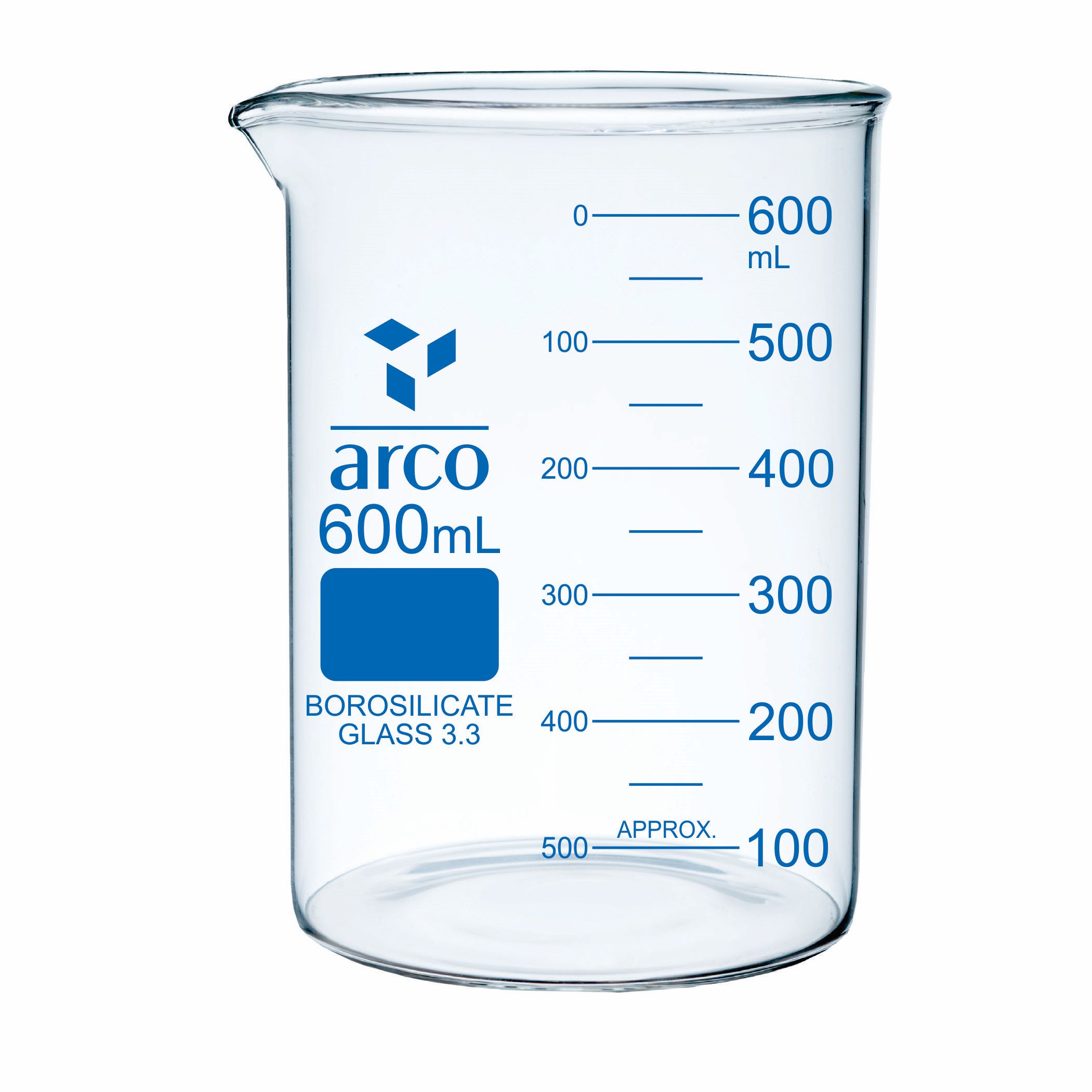 BEAKERS HEAVY DUTY LOW FORM WITH SPOUT, ISI mark and Heavy Wall 600ml