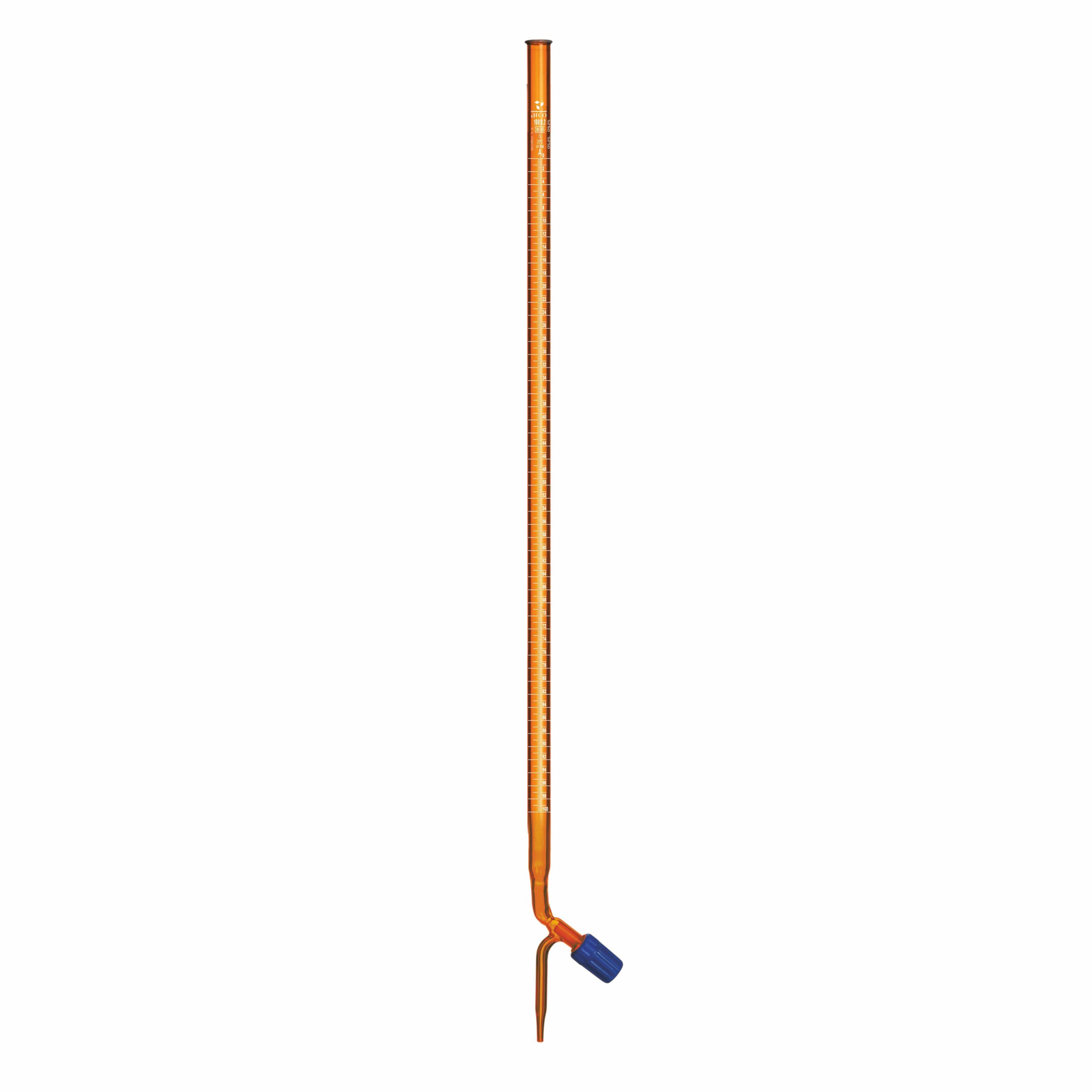 BURETTES, CLASS ‘A’, AMBER ROTAFLOW STOPCOCK STRAIGHT BORE 100ml