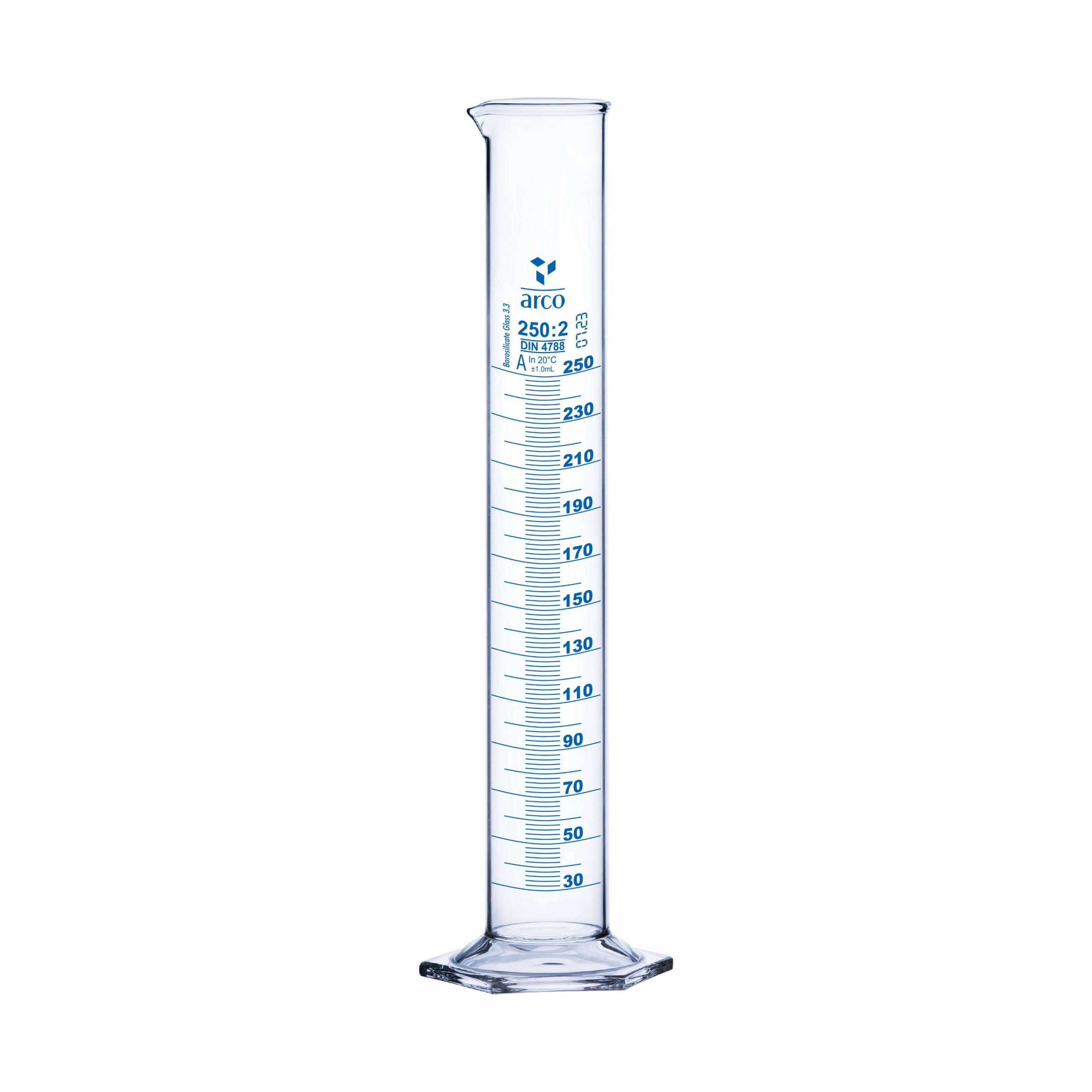 CYLINDER MEASURING, CLASS ‘A’ HEXAGONAL BASE 250ml