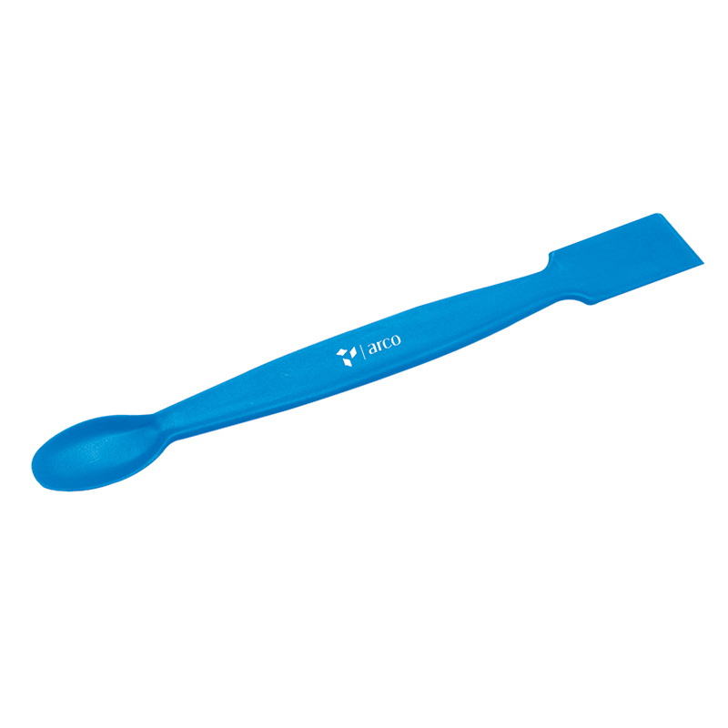 Moulded in polypropylene, a spoon at one end and other end is flat with a knife edge.